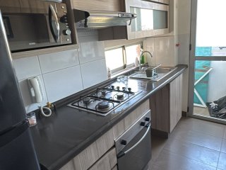 En Venta Precioso Departamento Amoblado con Vista al Mar en Reñaca Amplio y luminoso departamento con excelentes terminaciones, completamente amoblado y con terraza cerrada para disfrutar de una espectacular vista al mar durante todo el año. Características principales: 3 dormitorios (principal en suite) 2 baños con ventilación natural Living comedor amplio Cocina amoblada y equipada + logia Terraza doble cerrada con ventanales Estacionamiento subterráneo y bodega Equipamiento: Porcelanato en living y pasillos, dormitorios con piso flotante, cubiertas de mármol, calefacción por radiadores, agua caliente por caldera independiente. Incluye muebles, camas y 3 televisores. Sistema de alarma y citófono. Condominio Premium: 3 piscinas con jacuzzis y toboganes Circuito de trekking, cancha de baby fútbol 4 quinchos panorámicos, gimnasio panoramico con vista al mar Sala de juegos, bar y áreas verdes Acceso controlado y seguridad 24/7 Ubicación Privilegiada: Sector residencial tranquilo, cercano a colegios, supermercados, Clínica Reñaca, playas y restaurantes. A solo 5 minutos del centro de Reñaca, con excelentes accesos a Concón, Viña del Mar y transporte público.